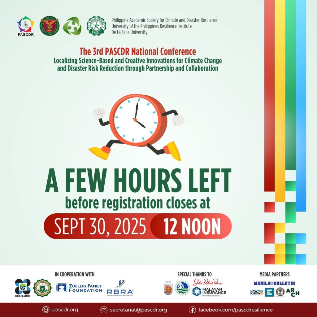 Join academics, practitioners, and communities in presenting solutions and forging partnerships for climate and disaster resilience. Registration lasts until tomorrow, September 30, 2025 at 12 noon.